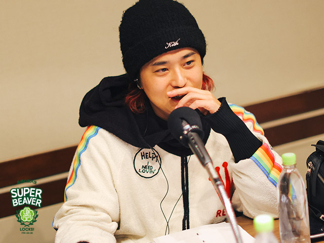 渋谷「頑張ってほしい!!その気持ちしかないんだよ。もちろん頑張っているのはわかっているし、頑張っている人に『頑張れ!』って言っちゃいけないみたいな風潮がたまにあったりするけど、実はSUPER BEAVERは全然そんなことは思っていなくて、本当に自分たちが思ってる気持ち・送れる気持ちっていうのは「頑張ってね」ってそういう強い気持ちだから。自分は頑張ってるのに頑張ってって言わないでよ!みたいな。そういう気持ちにならずに満額受け止めてくれたら嬉しい!」