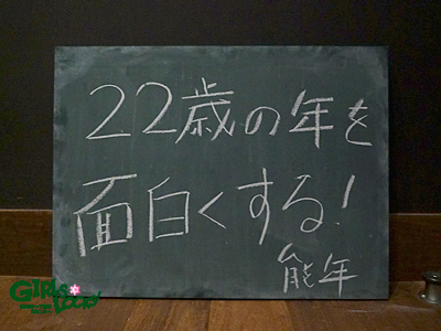 そんな誕生日を過ごした玲奈ちゃんですが、そろそろ授業っぽいことをしなきゃと思うので、22歳の目標を黒板に書いてもらいましょう!! 黒板カモン!