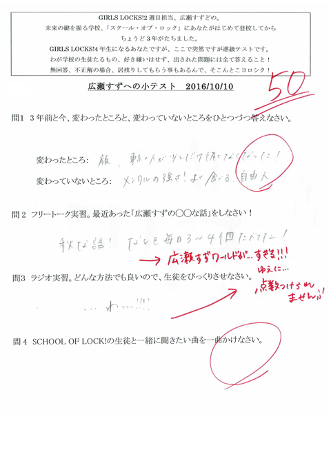 GIRLS LOCKS!2週目担当広瀬すずちゃんがこの女子クラスに登校し始めて丸3年!4年目に突入です!!