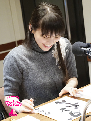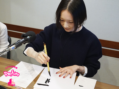 のっち「毎年毎年そうなんだけど、出会いによってPerfumeにもたらされる新しい挑戦だったり、転機だったりとか、毎年そういうのがあって、多分2017年もそういう機会が来るだろうなと思ってて。そういう出会いをひとつひとつ大事に、これからに繋げていけたらなと思い、『一期一会』と書きました。」