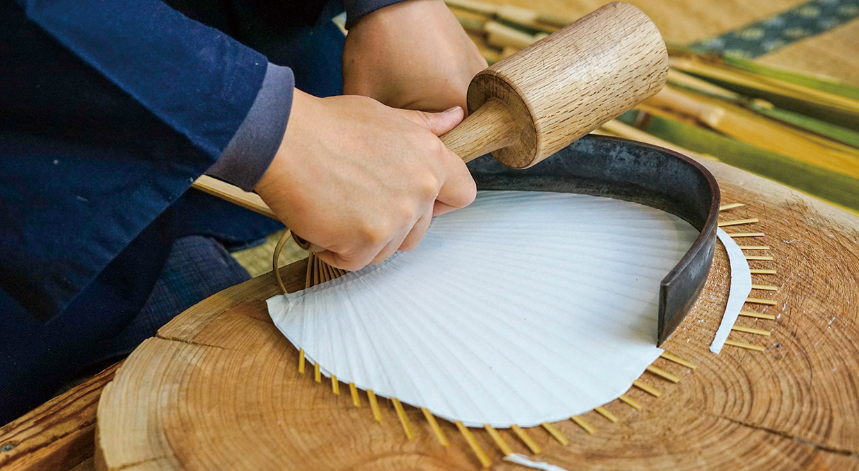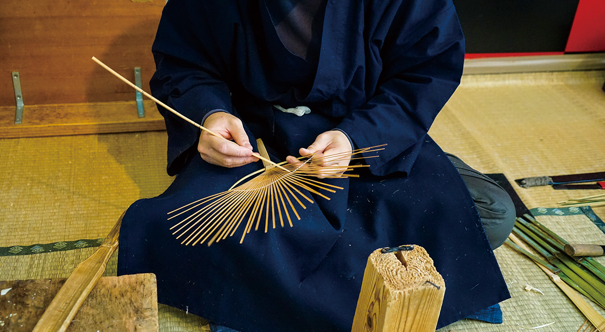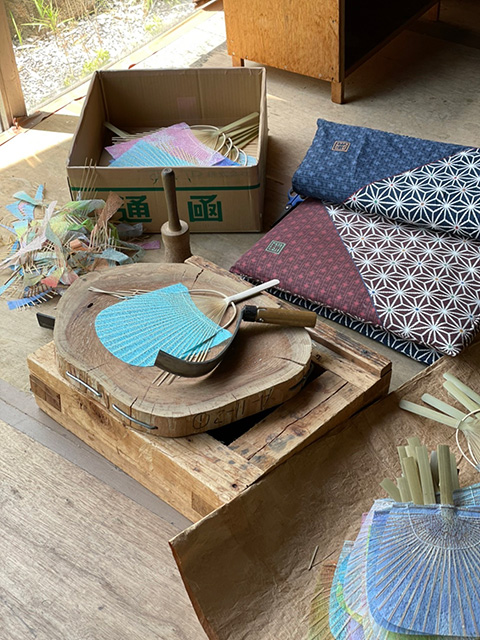 丸亀うちわづくりには、大きく分けて「骨」と「貼り」の工程があり、