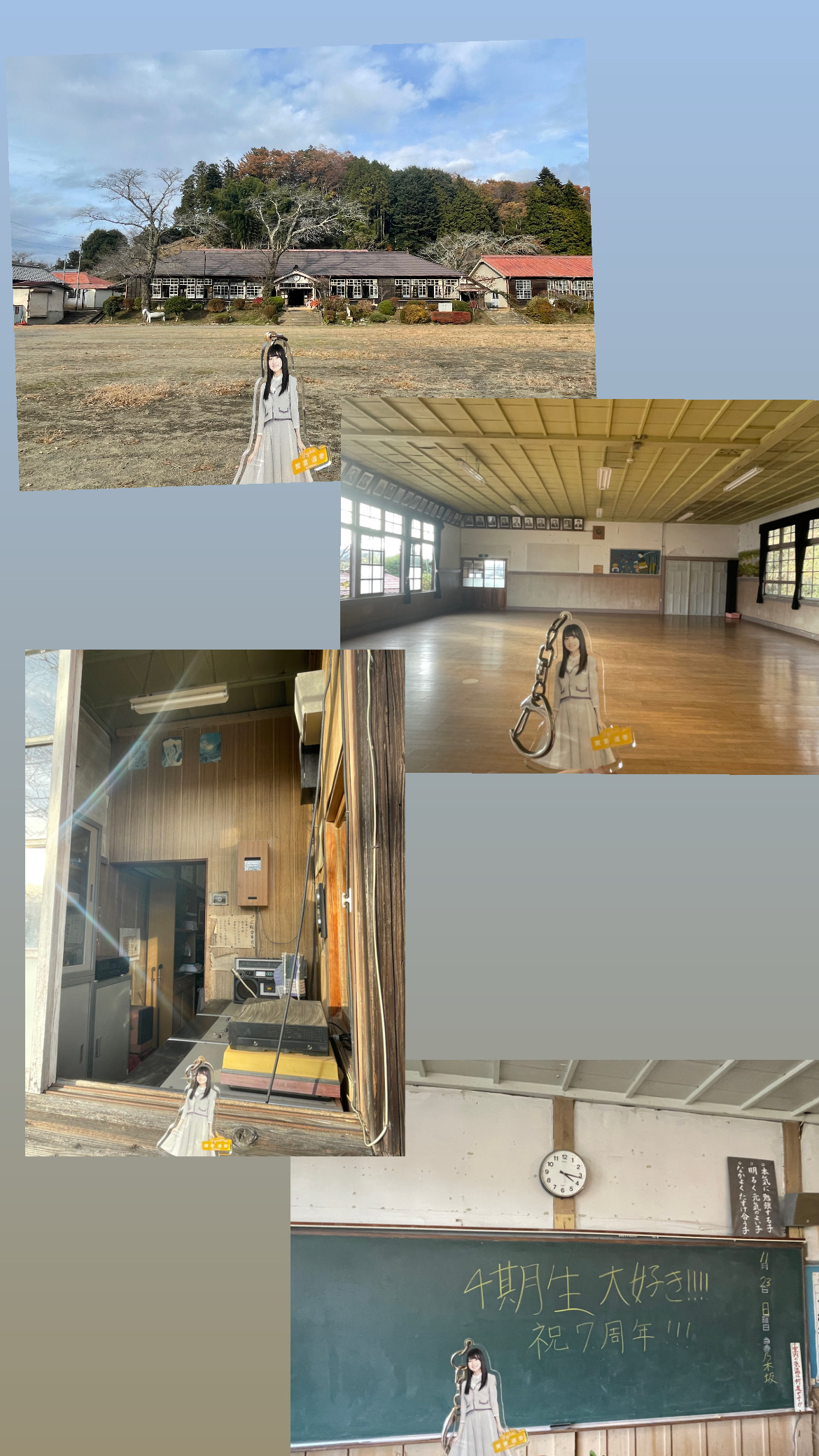 遥香「あー!これはすごい!このアクリルスタンドも、私がデビューして間もない頃じゃないですかね?1番最初に撮ったやつだと思います!そんな最初の頃のアクリルスタンドを持って行ってくれている。ありがとうございます!黒板に『4期生大好き!祝7周年!』って書いてくれて嬉しい~!この学校はその頃から行っていないけど、思い出がたくさんあって…初めてのMV撮影だったので、ものすごく緊張もしていたんですけど、楽しくて!校庭で踊っているシーンもあったんですけど、風が強すぎて…!機材を運んでくるトラックで、スタッフさんが風よけを頑張って作ってくださって、そこで私たちにできるだけ風が当たらないようにっていうお気遣いをしていただいた中で、外で踊ったり体育館をかわいく装飾していただいて、みんなで踊ったし…特別な場所なので、そこに足を運んでくださるっていうのが、ものすごく愛を感じます。また行ける時があったらいいな~。4期生もちょっとずつ大人になっているけど、メンバーも人数が少なくなってきたりしているけど、4期生は変わらずに4期生なので、今年もあと少しですし、今年が終わっちゃったらまた2人いなくなっちゃうけど、来年も変わらず私たちみんなで頑張っていけたらなって思います!