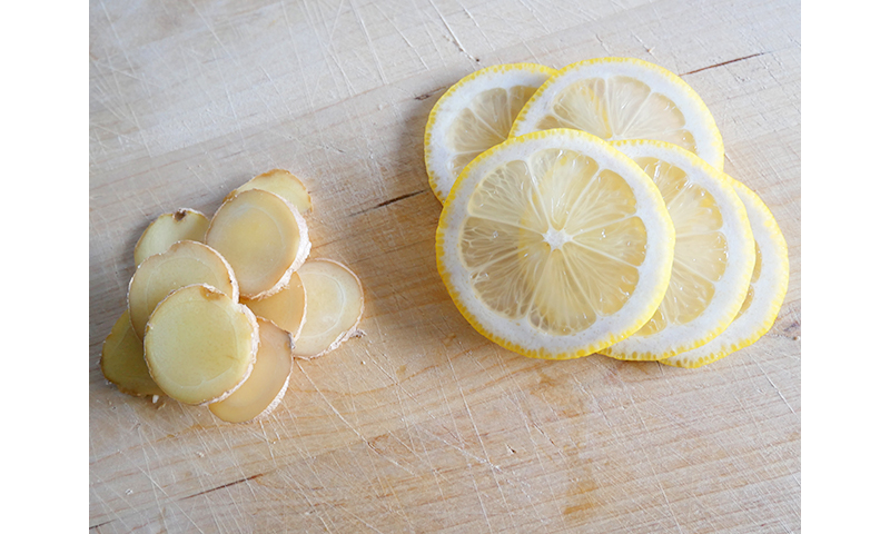 1. レモンも生姜も皮のままスライスにする。