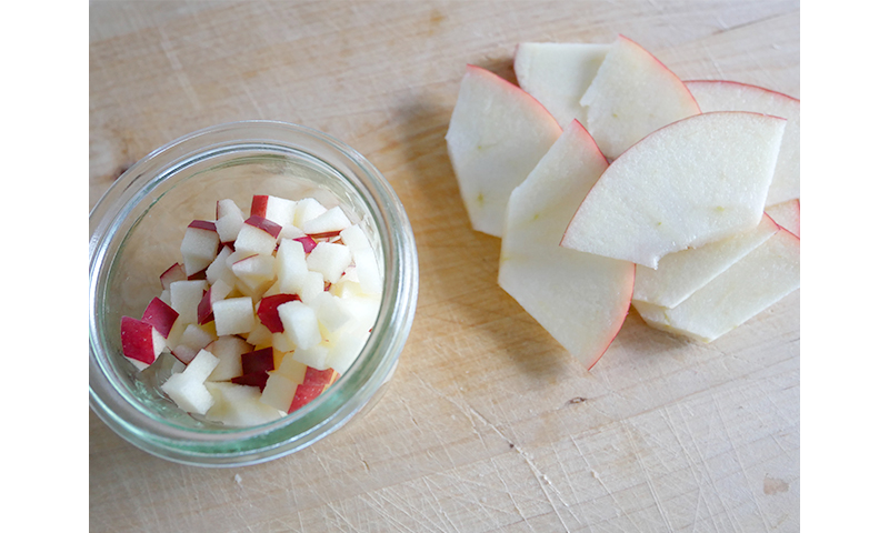 1. りんごを細かい角切りとスライスにする。