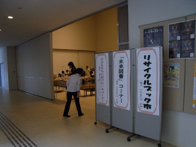 今回はリサイクルブック市へのスタッフサポートと、その一角で子ども未来図書の展示を行いました。