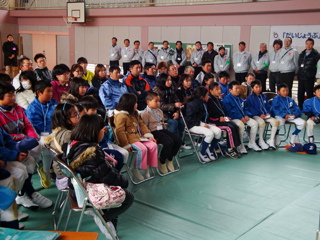練習着のまま参加してくれた“久下ドルフィンズ”、そして“こども会”の皆さん、“久下ドルフィンズ”の監督・コーチ、児童の保護者の皆さん、総勢25組・47名の参加者を迎えて午後のイベントがいよいよスタート!