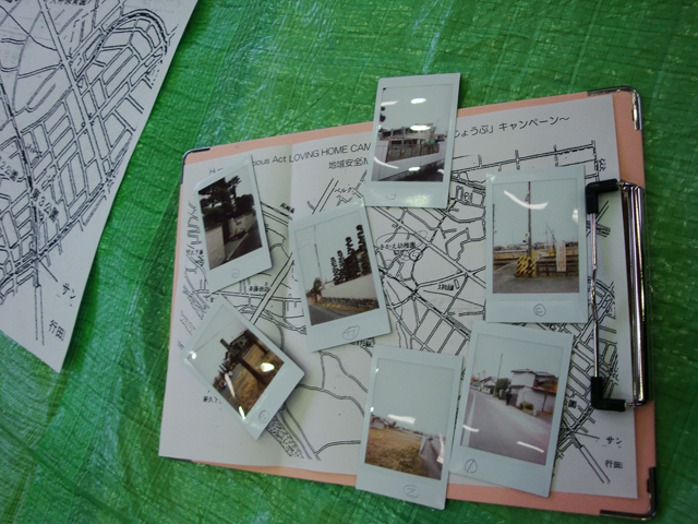 各班で違うルートを回り、学校周辺の「入りやすくい」「見えにくい」危険な場所を探して地図に印を付け、写真を撮影。