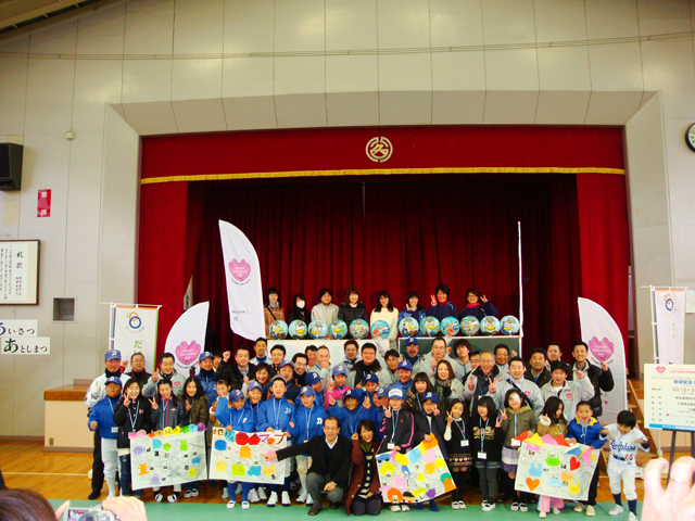 今回のイベントには久下小学校を拠点に活動している小学生のソフトボールチーム、“久下ドルフィンズ”と、“こども会”から25人の児童とその保護者など総勢47名にご参加頂きました。