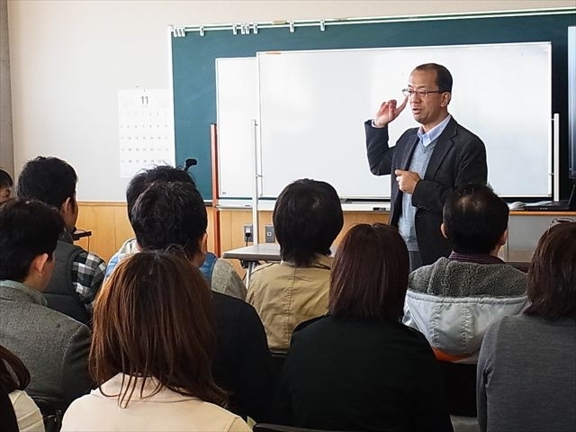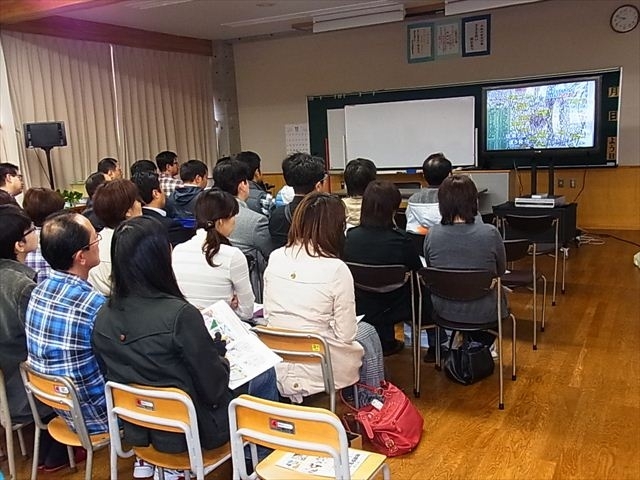 午前中は「地域安全MAP教室」の指導員としてボランティア参加頂く東京海上日動の代理店・社員の皆さん、そして万代長嶺小学校のPTA役員の皆さんが、立正大学の小宮信夫教授による「地域安全MAP教室」の指導者養成講義を受講しました。