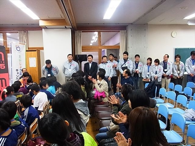 東京海上日動の代理店・社員の皆さんもお揃いのイベントジャンパーを着て児童達とご挨拶。