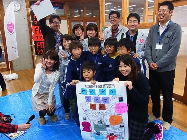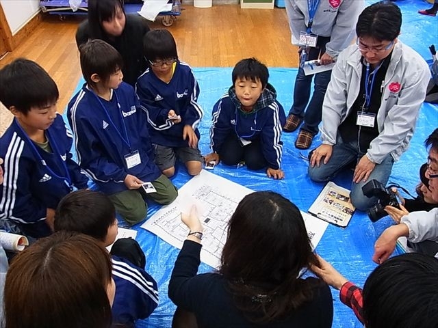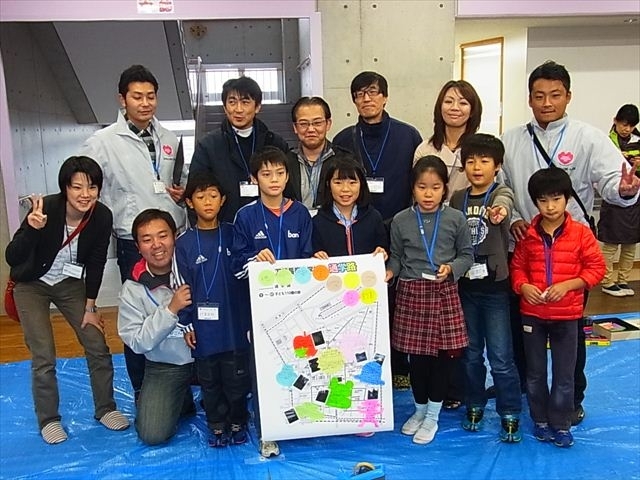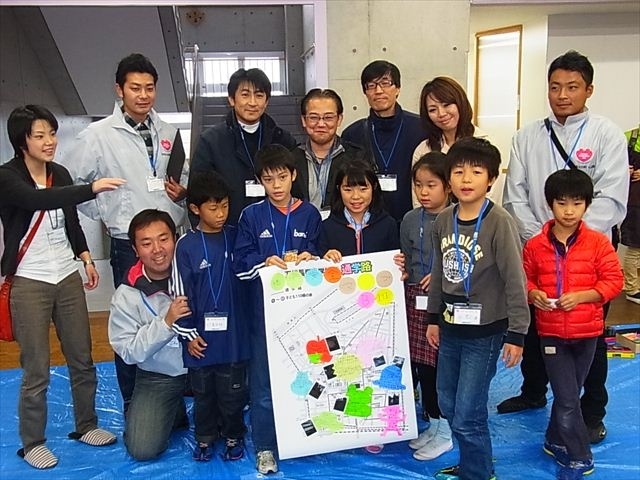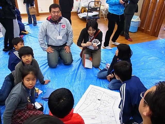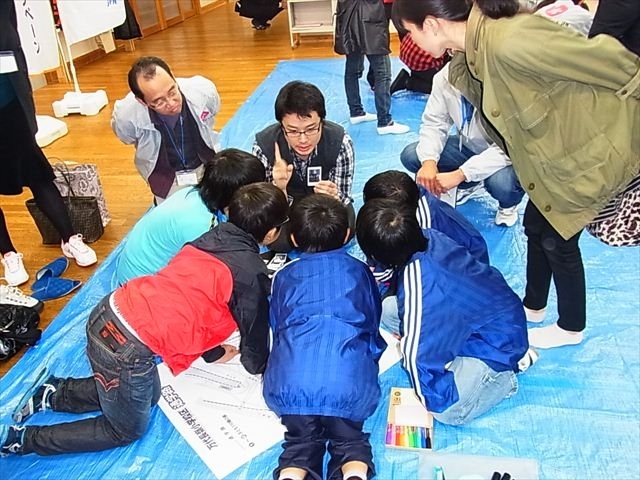 子供たちも講師の話を聞くだけではなく、ハサミとノリを使って地図を作る作業に熱心に取組み、元気な声が会場に響いていました。