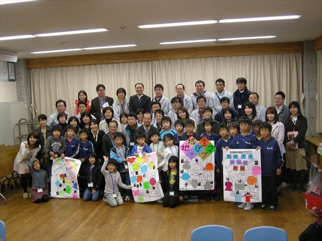 最後は自分達で作成した地域安全マップを持って全員で記念撮影!