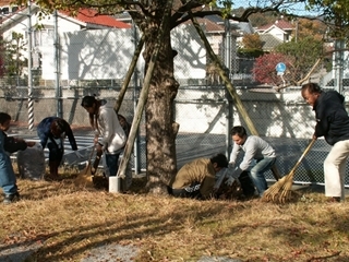 ハキハキ、ハキハキ・・・。みんなで協力して落ち葉やゴミを集めます。