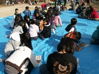 ボランティアリスナーの皆さん。ご年配の方から小さな子供まで幅広い世代の人が、合わせて118名もくすのき公園に大集合!