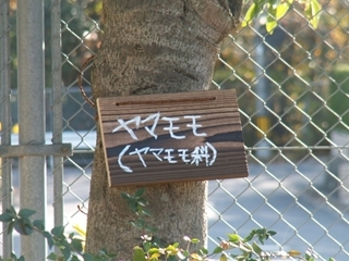 先生から樹木の説明を聞きながら、作ったネームプレートを木にくくりつけて完成!