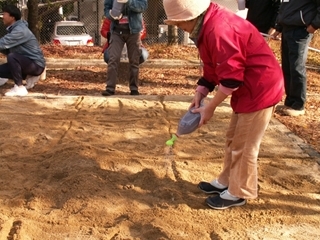 その後で抗菌砂をまいて、元々の砂と攪拌(カクハン)します。
