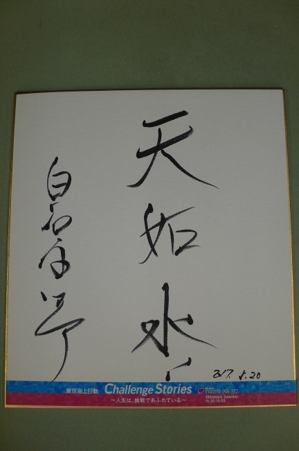 番組ではそんな白石さんの挑戦に関するメッセージを色紙に書いて頂きました!こちらの色紙を1名様にプレゼントします。このホームページ右のメッセージフォームから「白石康次郎さんの色紙希望」と書いてご応募ください!