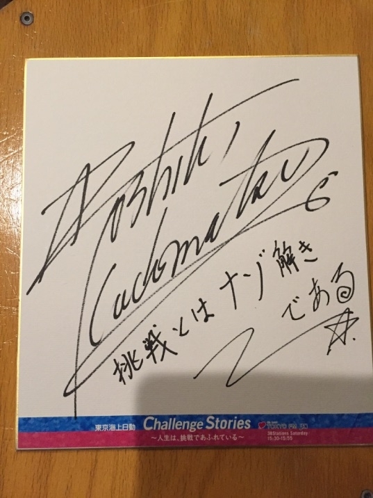 番組ではそんな角松さんの挑戦に関するメッセージを色紙に書いて頂きました!こちらの色紙を1名様にプレゼントします。このホームページ右のメッセージフォームから「角松敏生さんの色紙希望」と書いてご応募ください!