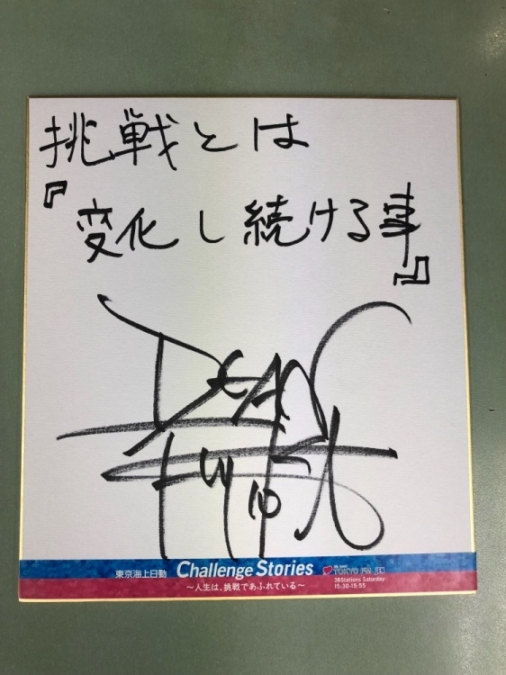 番組では、そんなDEAN FUJIOKAさんの挑戦に関するメッセージを色紙に書いて頂きました!こちらの色紙を1名様にプレゼントします。このホームページ右のメッセージフォームから「DEAN FUJIOKAさんの色紙希望」と書いてご応募ください!