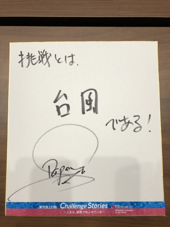 番組では、そんなパパイヤ鈴木さんの挑戦に関するメッセージを色紙に書いて頂きました!こちらの色紙を1名様にプレゼントします。このホームページ右のメッセージフォームから「パパイヤ鈴木さんの色紙希望」と書いてご応募ください!