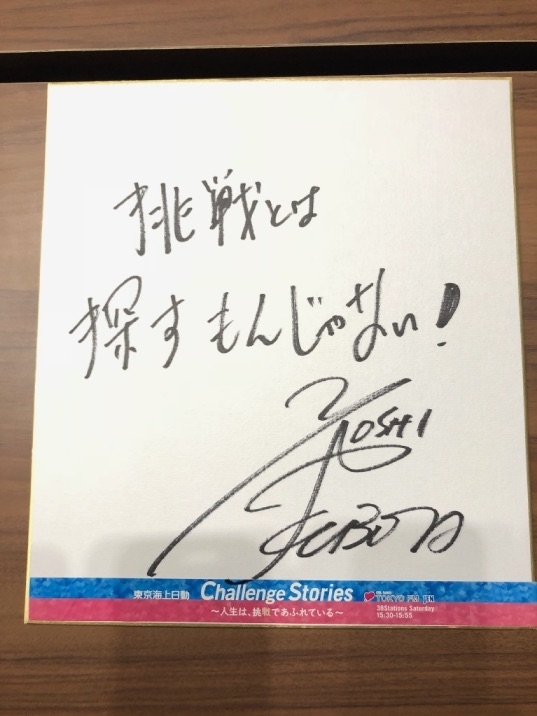 番組では、そんな久保田利伸さんの挑戦に関するメッセージを色紙に書いて頂きました!こちらの色紙を1名様にプレゼントします。このホームページ右のメッセージから「久保田利伸さんの色紙希望」と書いてご応募ください!
