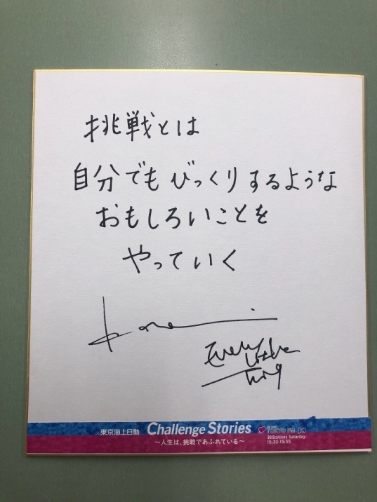 番組では、そんな持田さんの挑戦に関するメッセージを色紙に書いて頂きました!こちらを1名様にプレゼントします。このホームページのメッセージフォームから「持田香織さんの色紙希望」と書いてご応募ください!