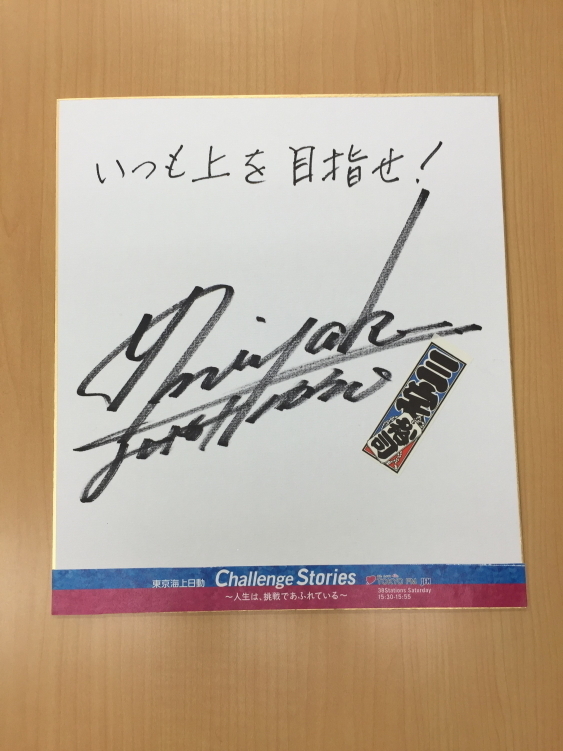 番組では、そんな三宅裕司さんの挑戦に関するメッセージを色紙に書いて頂きました!「いつも上を目指せ!」。こちらの色紙を1名様にプレゼントします。このホームページ右のメッセージフォームから「三宅裕司さんの色紙希望」と書いてご応募ください!