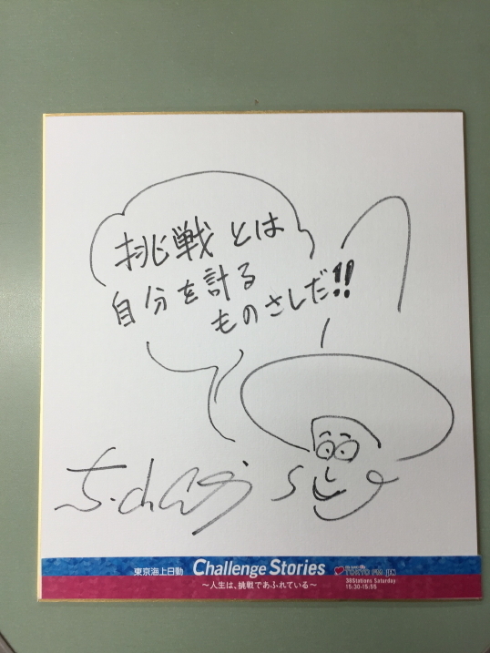 番組では、そんな東山彰良さんの挑戦に関するメッセージを色紙に書いて頂きました!こちらの色紙を1名様にプレゼントします。このホームページ右のメッセージフォームから「東山彰良さんの色紙希望」と書いてご応募ください!