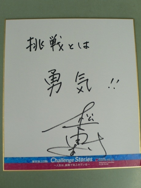 番組では、そんな松下由樹さんに挑戦に関するメッセージを色紙に書いて頂きました!こちらの色紙を1名様にプレゼントします。このホームページ右のメッセージフォームから「松下由樹さんの色紙希望」と書いてご応募ください!