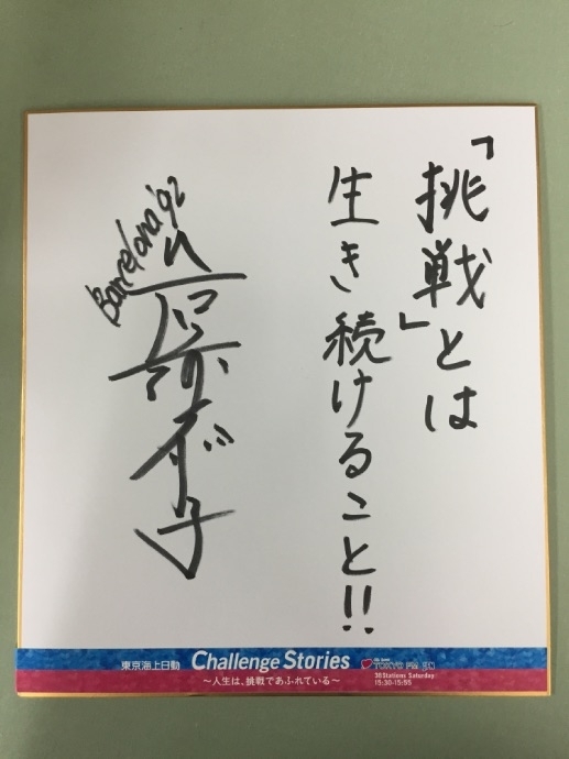 番組ではそんな岩崎さんの挑戦に関するメッセージを色紙に書いて頂きました!「挑戦とは生き続けること!!」こちらの色紙を1名様にプレゼントします。このホームページ右のメッセージフォームから「岩崎恭子さんの色紙希望」と書いてご応募ください!
