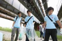 橋の近くのゴミは、地中に埋まっているものも多くて大変でした。