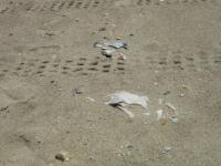 砂浜にクルマを乗り入れるので、ゴミが砂に埋もれてるんですよね・・・