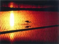 夕日を背にたたずむシラサギ。