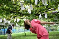 ぶどう園から戻ってくる参加者の皆さんを迎える準備が行われていました。