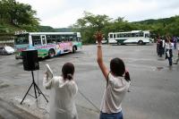 シャトルバスから、参加者の皆さんが続々と降りてきます。