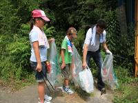 ここでも、ちびっ子パワーは健在です。みんなで一生懸命、湖をきれいに。