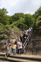 徒歩で、バスで、それぞれの清掃活動場所へ、班ごとに移動します。