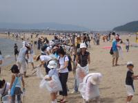 砂浜は花火やバーベキューの残骸、タバコなど小さなゴミが多く、