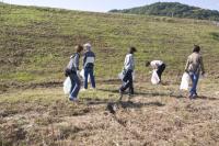 大きなゴミ袋を持って、みんなで協力してゴミ拾いです。