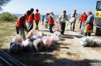 少年、少女たちが楽しそうに清掃活動をする様子を