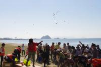 今回は清掃活動終了後のお楽しみ、「餅まき」の様子です。