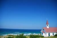 今年の11月で取り壊されてしまいます。青い空とエメラルドグリーンの海と白くまぶしい教会