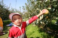 りんご狩り終了後、皆さんにおみやげ用のりんごをプレゼント。