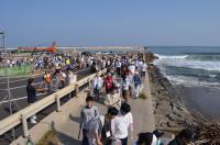 およそ500人の人達が、一斉に海岸に向かう様子は、