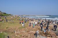 流木の下に埋もれるゴミを拾っている方の姿もありました。