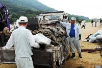 当日は、ボランティア参加して下さった「南部開発」さん・香川県建設業協会の皆様が軽トラックを出して、ゴミを回収しては集積所に運んでくれていましたが、すぐ一杯になってしまって常にフル回転。例えは悪いですが、まるで「戦場」でした。