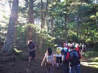 翌日は、いよいよ富士山3合目から5合目までのエコトレッキング。モモンガの巣を覗いたり、ビロードのような苔の原っぱを抜けたり、野鳥のハミングに耳を澄ましたり・・・3合目から約3時間のトレッキングでは、慣れない登山のしんどさも忘れて、普段言葉を交わす事もない遠くの地域のパーソナリティ・リスナー達と語らいながら、ゆっくりと五合目を目指します。