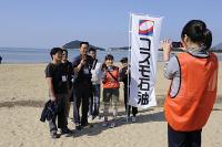 きれいになった砂浜で記念撮影を行い、車で15分ほど離れた「インパルみの」で行われるみとよマルシェに移動です。パーソナリティと記念撮影する人もいて名残惜しい感じです。