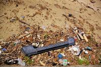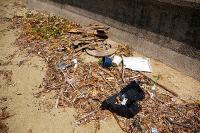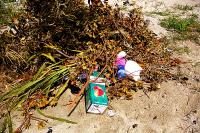 ちょっとショックですよね?更に見回してみると・・・砂浜だけの西浜に比べて手前に草むらのある永浜は、流れ着いたゴミが簡単に出て行かない、地形的な問題が有るようです。