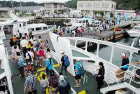 粟島港に到着すると、フェリーはなんと横付けではなく正面につけて、車の乗降口から一気に上陸していただきます。